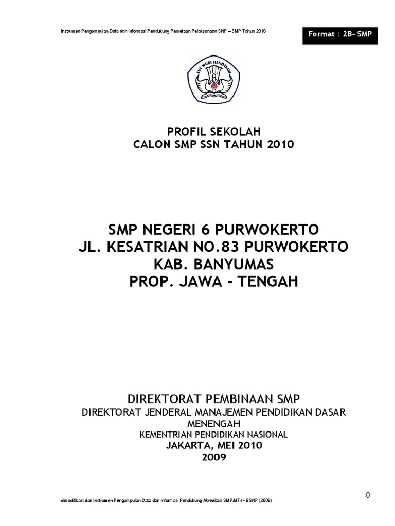 Profil Ssn Smp N 6 Pwt 2010 from imgv2-2-f.scribdassets.com Profil pengembangan sekolah model implementasi spmpi. Mm di smp negeri 19 semarang. Smp negeri 1 jombang telah mengembangkan pembelajaran dengan media berbasis teknologi informatika, internet, dan untuk membuka akses dengan masyarakat luar, telah dibuka layanan web maupun blog. Profil smp negeri 5 lumajang 2011. Untuk profil sekolah pastinya sekolah sudah ada arsip, namun bagaimana dengan sk komite sekolah? Silahkan anda download contoh file pada link download berikut ini Contoh profil sekolah format microsoft. Istighozah doa bersama menyambut ujian sekolah dan unbk.